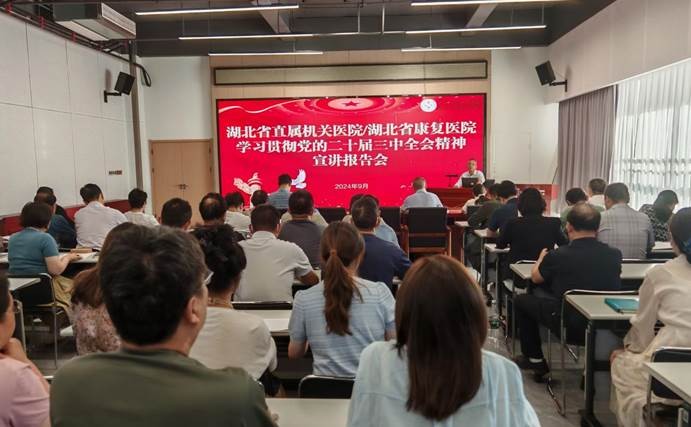 9月23-24日,湖北省直属机关医院/湖北省康复医院举办学习贯彻党的二十届三中全会精神宣讲报告会。院长夏文广及其他党委班子成员、中层干部、各党支部书记、支委、党员代表共110余人参加。