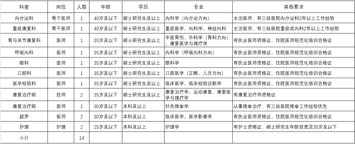 备注:学科带头人及博士等高学历人才以其他形式招聘。