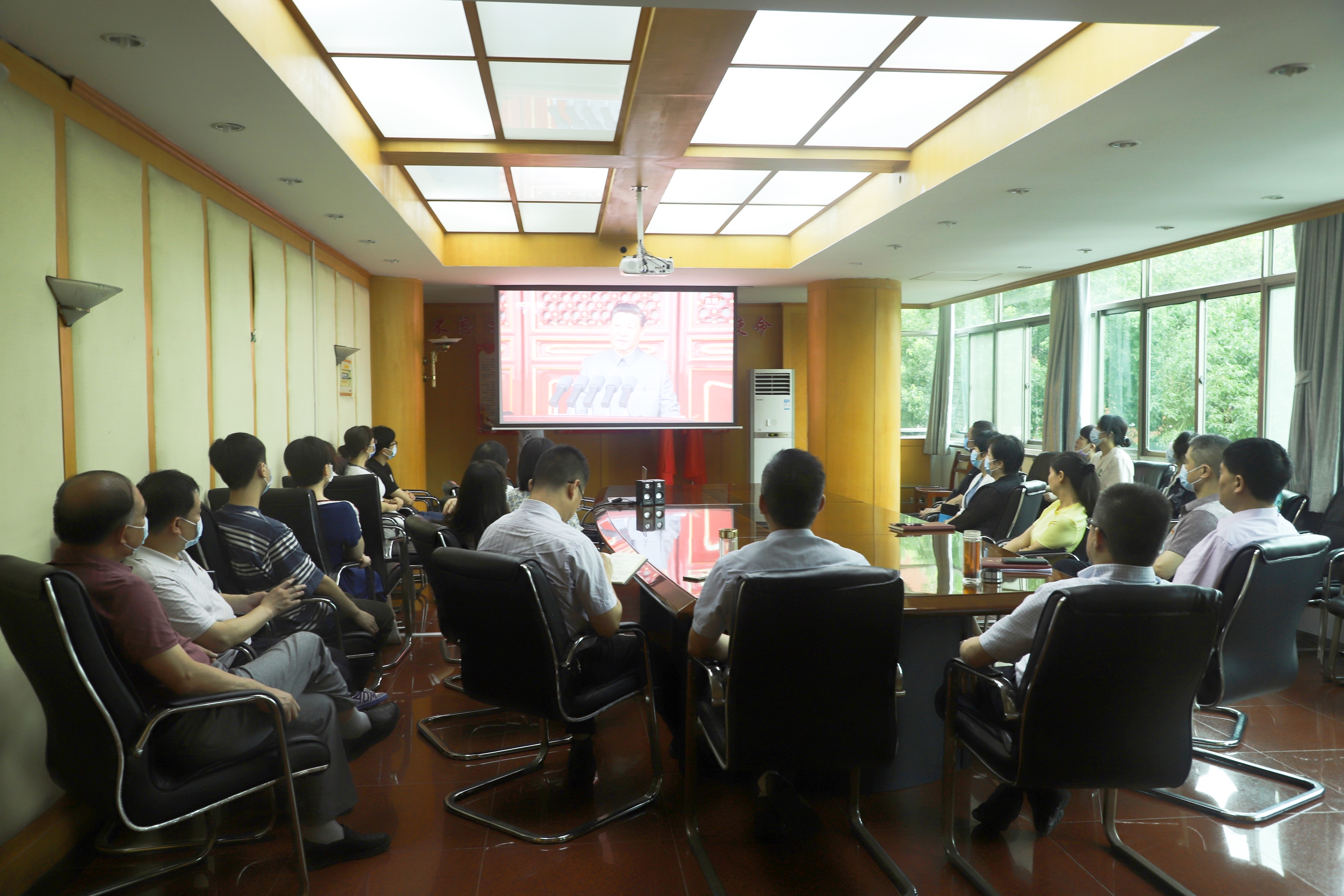 2021年7月1日上午,庆祝中国共产党成立100周年大会在北京举行,湖北省直属机关医院党员干部职工通过各种方式收看大会盛况,聆听中共中央总书记、国家主席、中央军委主席习近平发表重要讲话。
